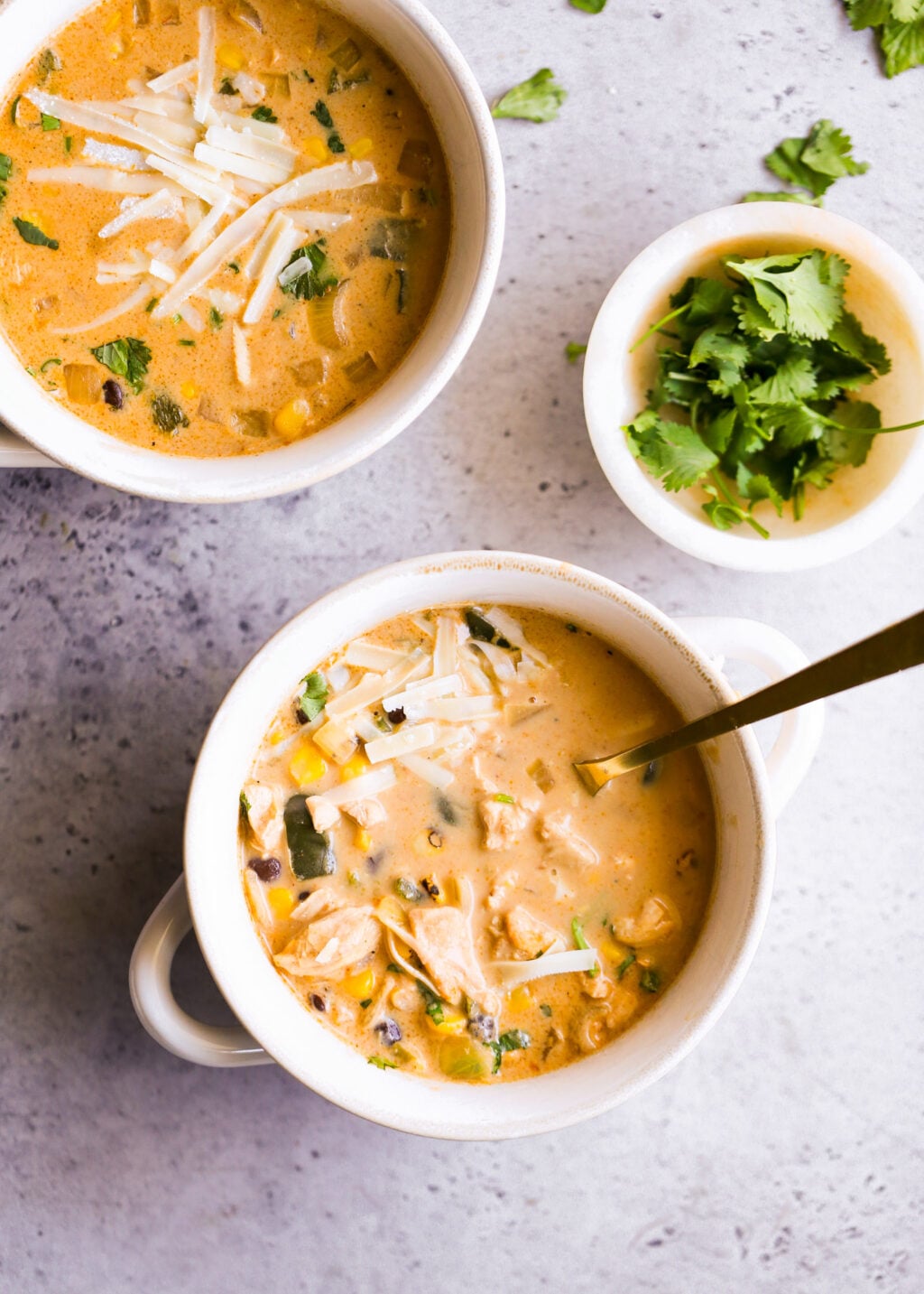 Creamy Chicken Poblano Soup with Corn and Black Beans