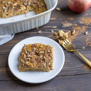 The flavor of this was perfect! Pumpkin, apple, cinnamon… what more could you want in a fall baked good!? However, I baked mine for 45 minutes and it was still runny. Any tips or suggestions? I was expecting more of a bar that would hold its shape, but instead had to scoop it out like a thick soup with a spoon. Thanks!
