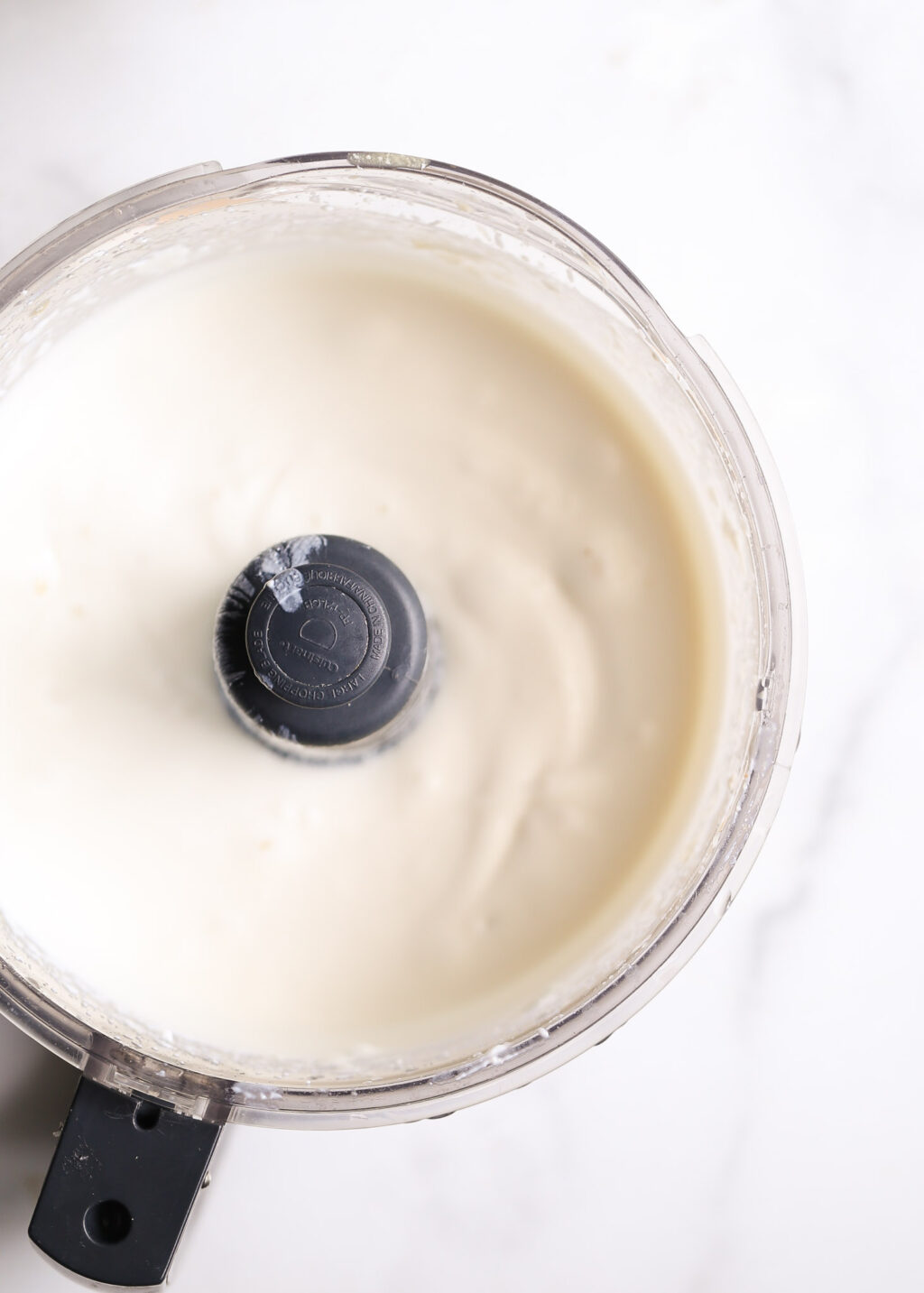 - Blend the filling by combining the cottage cheese, Greek yogurt, honey, lemon juice, and lemon zest in a food processor. Blend until completely smooth and creamy, about 1 – 2 minutes. Microwave the gelatin for about 15 seconds, or until warm and melted. While the motor is running in the food processor, pour the melted gelatin in with the cheesecake filling until completely smooth.